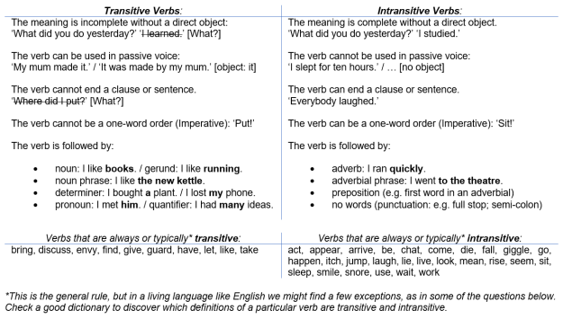 Why Use Transitive And Intransitive Verbs Worksheets With Answers?