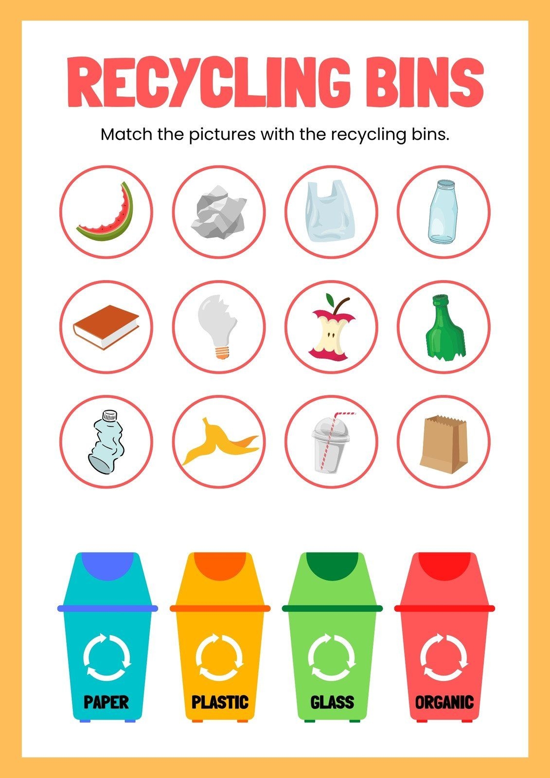 Recycling Bins Yellow Red English Matching Worksheet Templates By