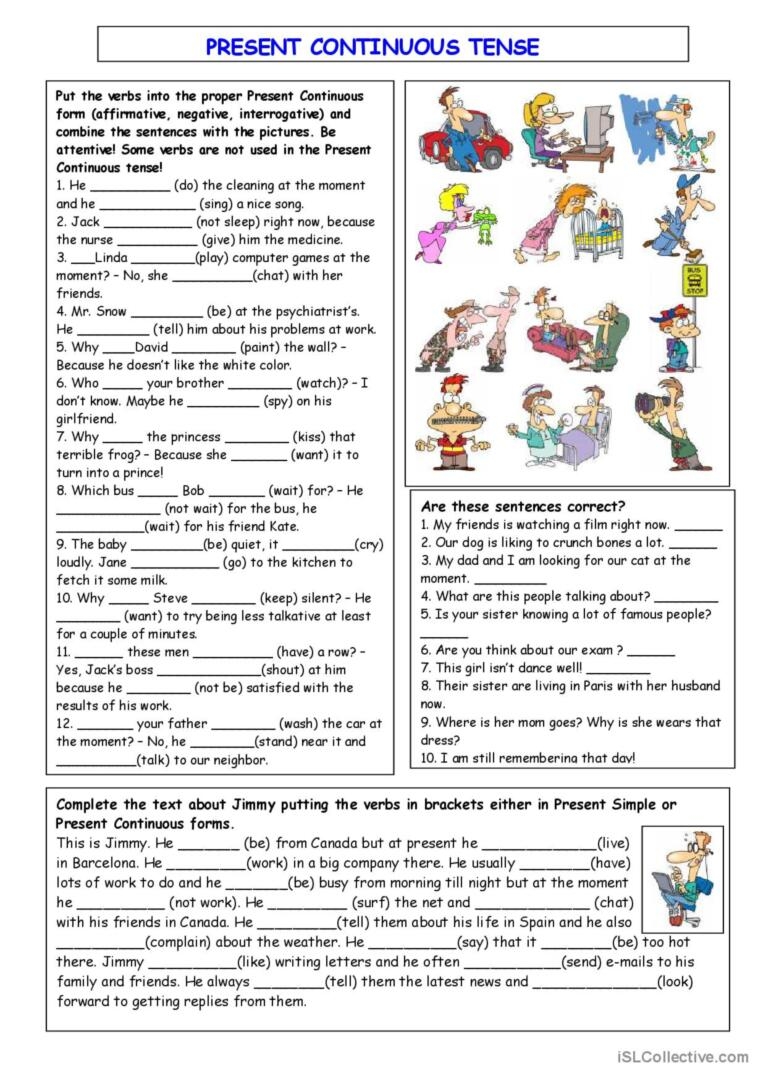 Using worksheets to practice the present continuous tense can be a helpful way to reinforce understanding and improve fluency in using this verb form. These worksheets typically include exercises that require students to fill in the blanks with the correct form of the verb, create sentences, or identify the correct tense used in a given sentence.